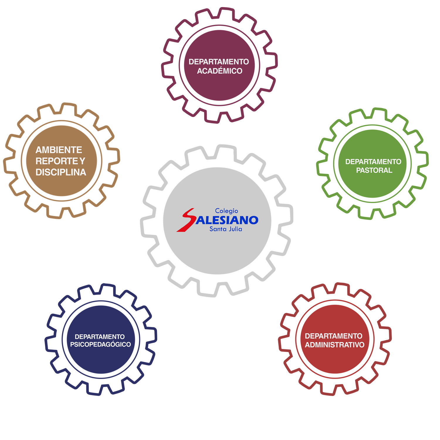 Es importante entender que al centro de nuestras acciones se encuentra nuestra misión, que está constituida por cinco variables críticas que dan sentido a la existencia de los cinco departamentos y marcan la directriz de las acciones que cada departamento lleva a cabo mediante 15 programas.